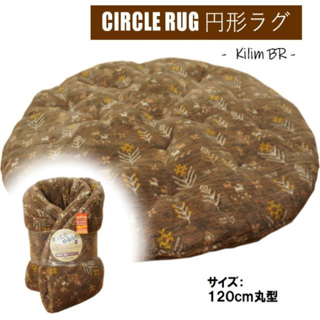 ふわふわ丸型クッションラグ キリム柄 ブラウン色 直径120cm お昼寝マット ご家庭で洗えます 贅沢なペット用ベット
