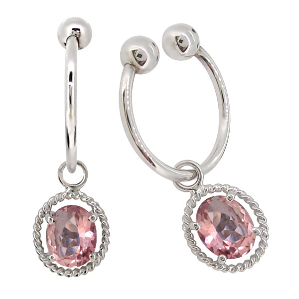 10月誕生石ピンクトルマリンを使用したプラチナ製の、シンプルなツイストデザインのフープイヤリングです。