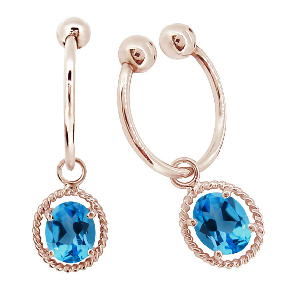 ノンホールピアス フープピアス ホワイトゴールド k10 イヤリング 揺れる 大粒 ブルートパーズ イヤーカフ