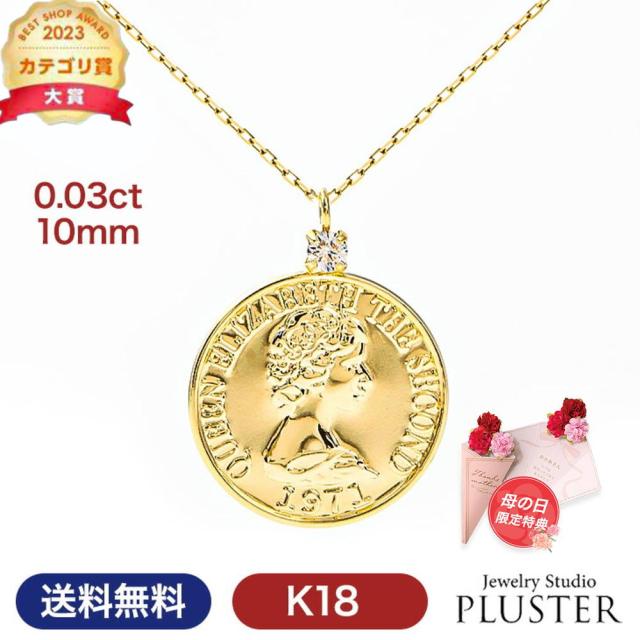 ネックレス レディース コインネックレス 10mm アレルギー対応 コイン k18 18金 ゴールド ゴールドネックレス 金 メダル 硬貨 ダイヤモンド ダイヤ 天然ダイヤ 0.03ct メンズ トレンド 誕生日 プレゼント ギフト 女性 人気 アクセサリー ジュエリー ブランド 特典 母の日