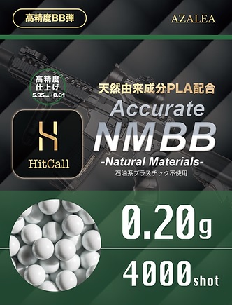 【メール便送料無料】HITCALL 天然由来成分PLA配合 NM BB弾 0.2g 4000発 高精度 高真球 ウォーター研磨仕上げ採用 エアガン用 ヒットコール
