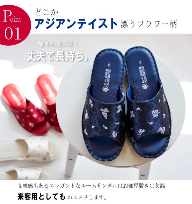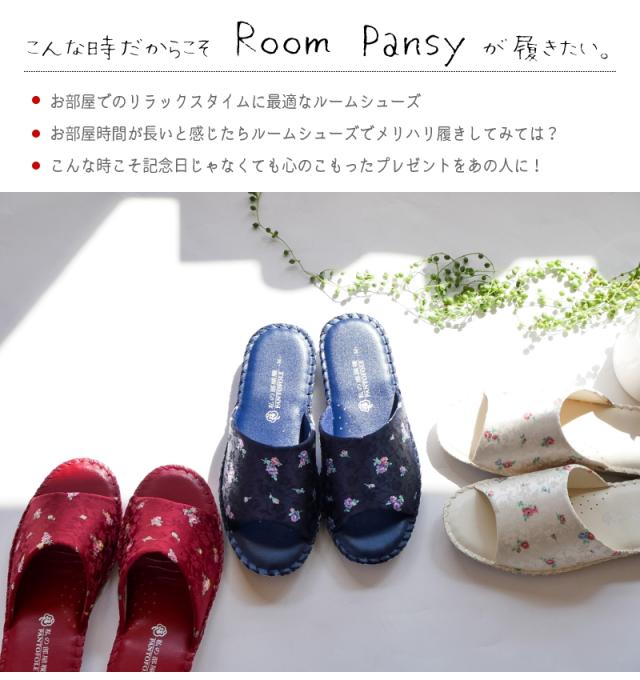 Pansy パンジー パントフォーレ スリッパ ルームシューズ レディース フラワー柄 超軽量 フラットソール ネイビー アイボリ 赤 つっかけ 巣ごもり 室内 柔らかい オフィス 病院 学校 3e