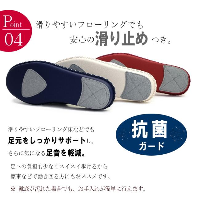 靴裏にはフローリングや床などでも安心の滑り止めが付いてます。