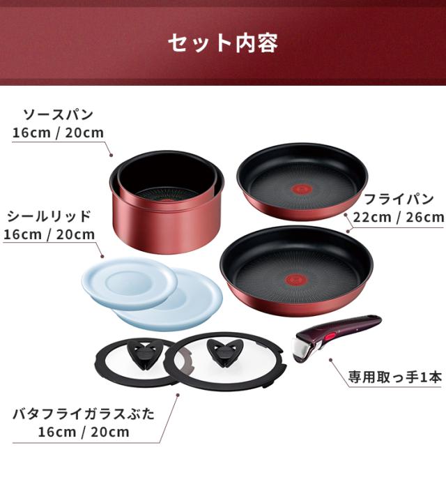 フライパン ティファール IH・ガス火対応 9点セット IH ガス火 T-fal インジニオ・ネオ IHルージュ アンリミテッド セット9 レッド L38392 ingenio 取っ手が取れる コンパクト収納 収納 お知らせマーク 送料無料