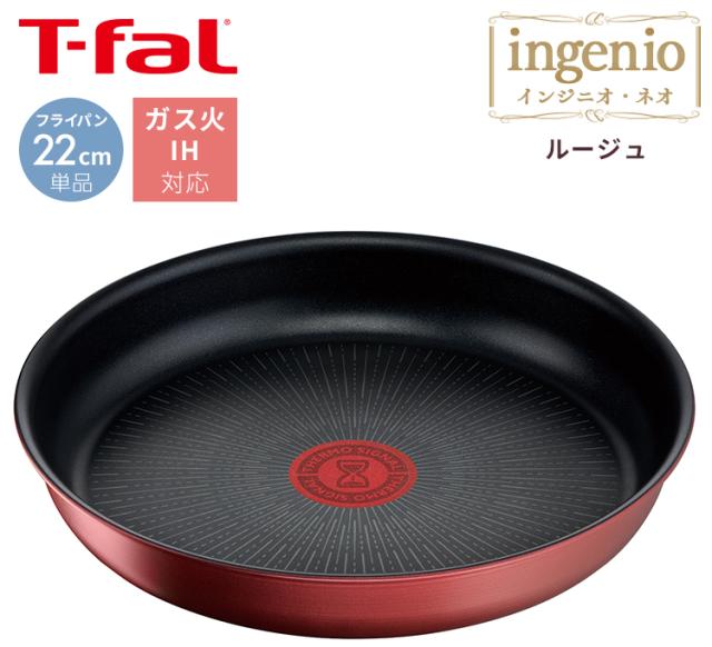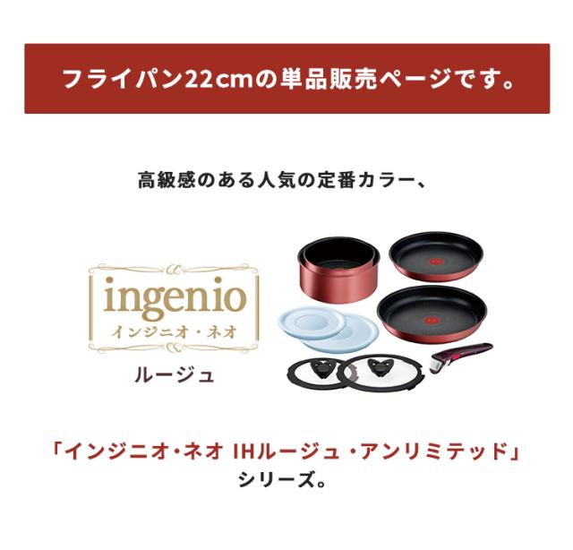 フライパン 22cm ティファール IH対応 ガス火対応 IH ガス火 T-fal インジニオ・ネオ IHルージュ アンリミテッド フライパン22cmレッド L38303 ingenio 取っ手が取れる コンパクト収納 お知らせマーク こびりつきにくい 送料無料 母の日
