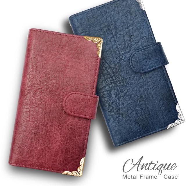 Redmi Note 10 JE XIG02 シャオミ スマホケース おしゃれ かわいい 手帳型ケース カバー ビンテージ調 レザー ヴィンテージ ゴールド フレーム デコ