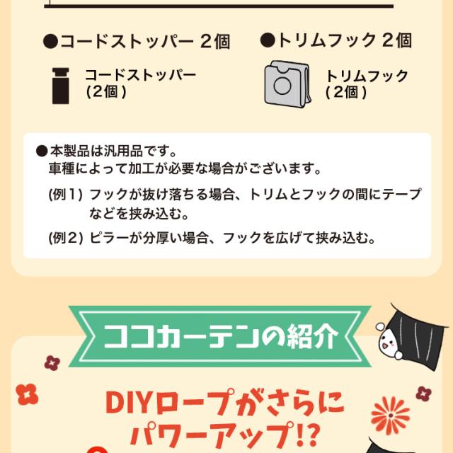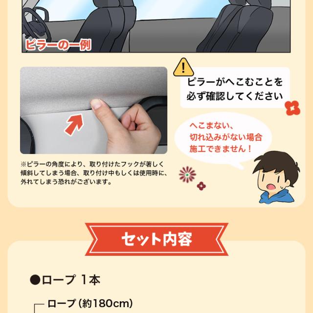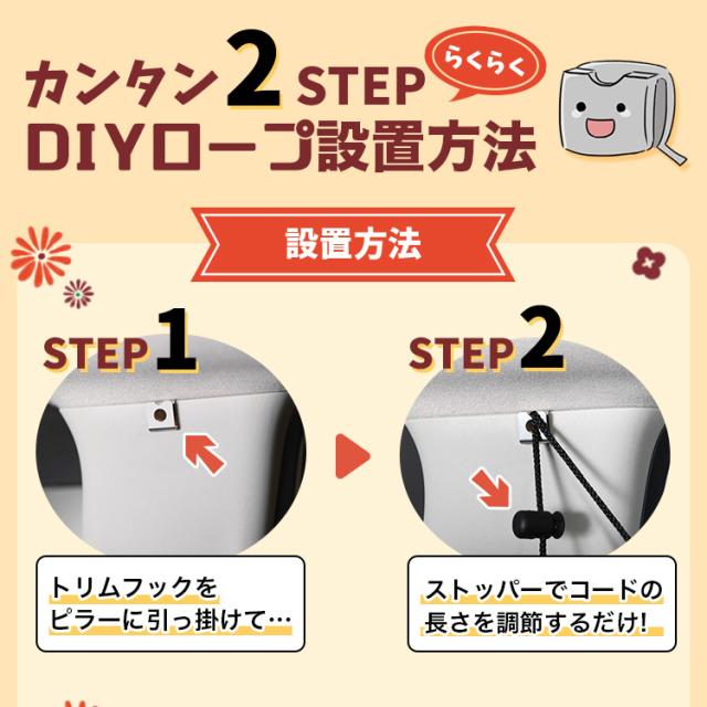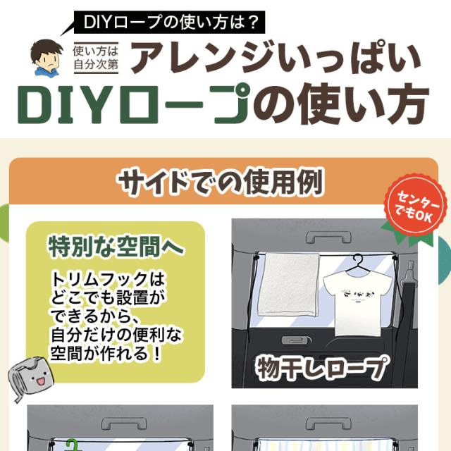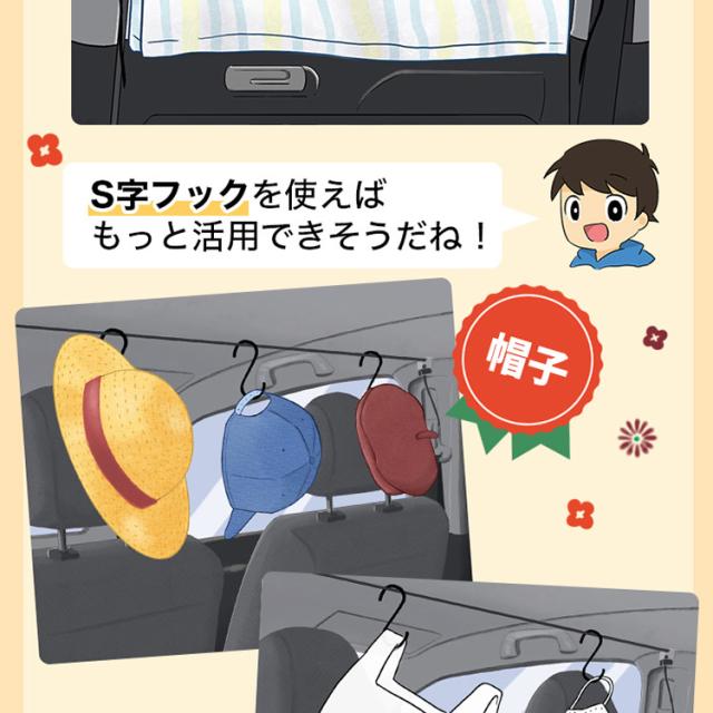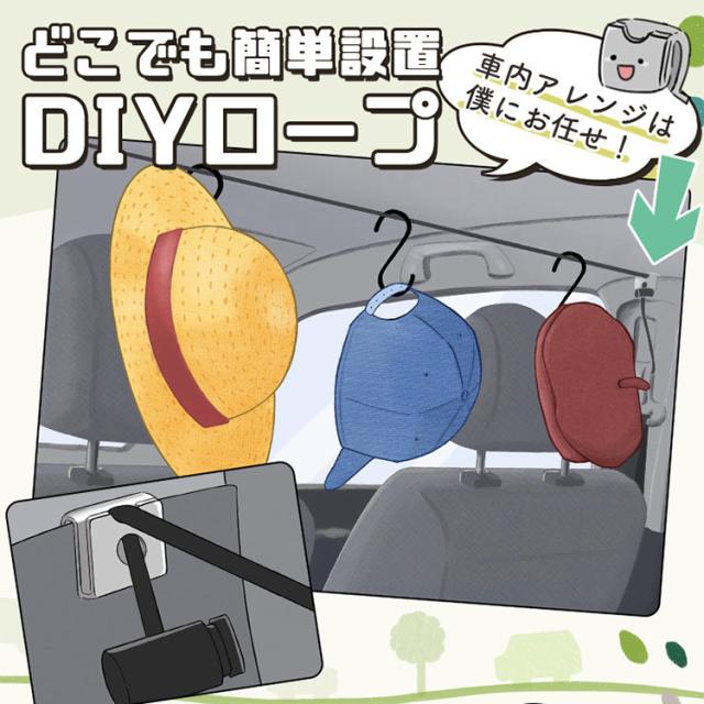 車 収納 物干し ロープ フック 突っ張り棒 荷物固定 ゴミ袋 小物 アウトドア キャンプ 釣り ハンガー 傘 靴 【ネコポス】【Lot No.01】 洗濯物干し タオル掛け 運転席 軽自動車 ミニバン SUV