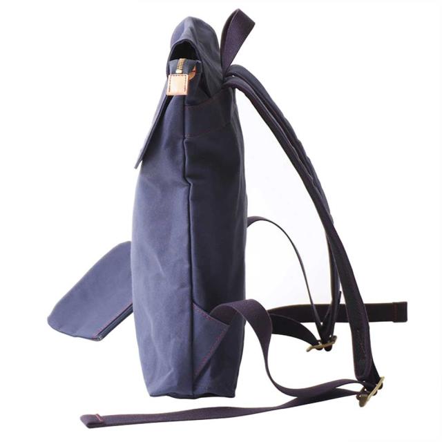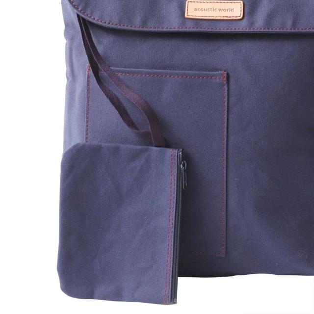 acoustic world アコースティック・ワールド stitch ステッチ フラップ リュック デイパック 日本製 本革 帆布 ネイビー aw01905-NV