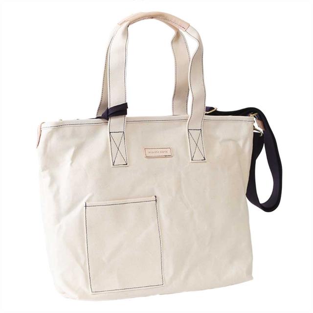 acoustic world アコースティック・ワールド stitch ステッチ 2way 横型 トートバッグ ショルダー 日本製 本革 帆布 キナリ aw01903-BE