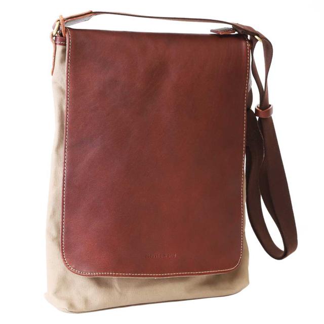 縦型A4サイズがすっぽり。帆布&タンニンなめし革で気取りすぎない大人カジュアルを。