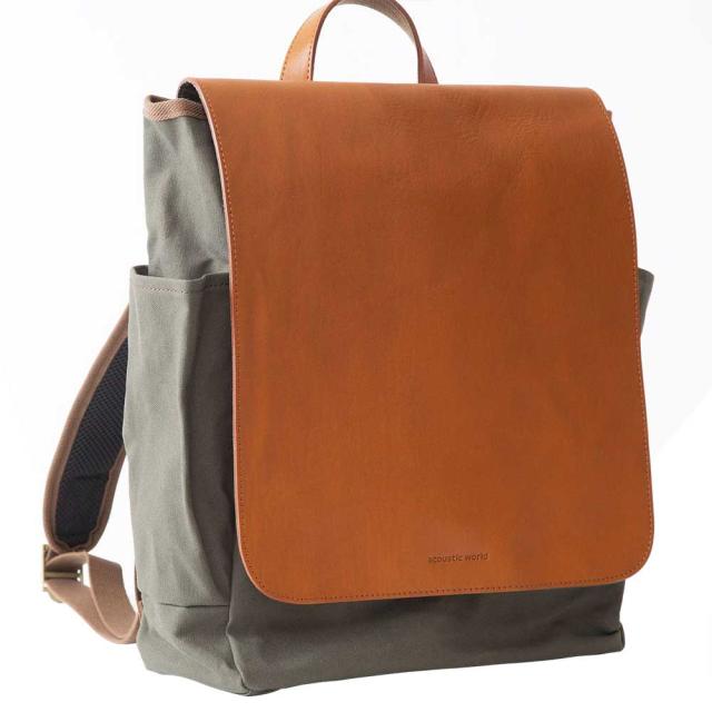 【ポイント10倍】acoustic world アコースティック・ワールド FRANK フランク フラップ バックパック リュック A4 日本製 本革 帆布 キャメル aw00208-CA