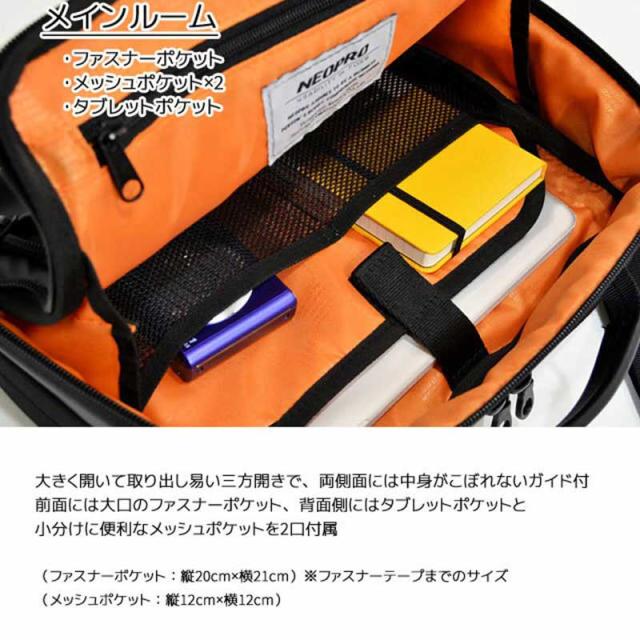 メインルーム:ファスナーポケット、メッシュポケット×2、タブレットポケット
