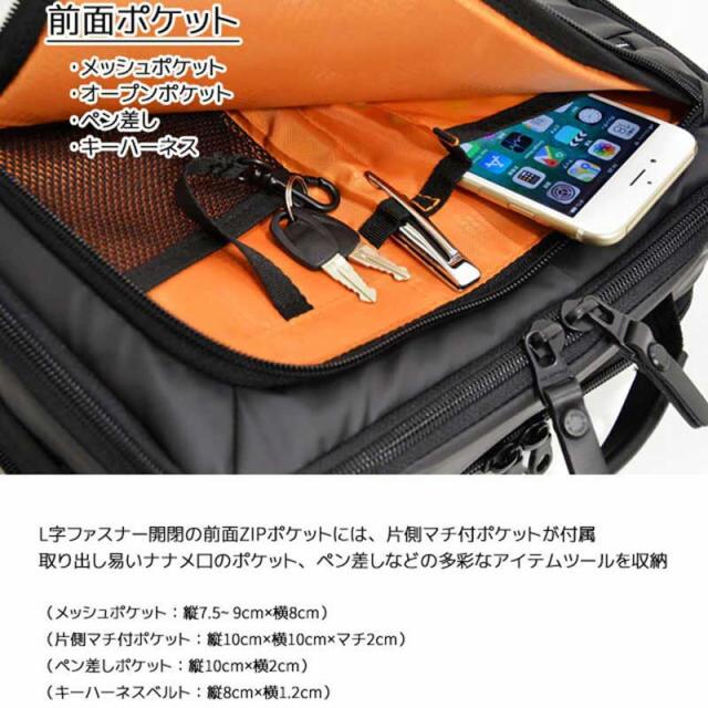前面ZIPポケット:メッシュポケット、オープンポケット、ペン挿し、キーハーネス