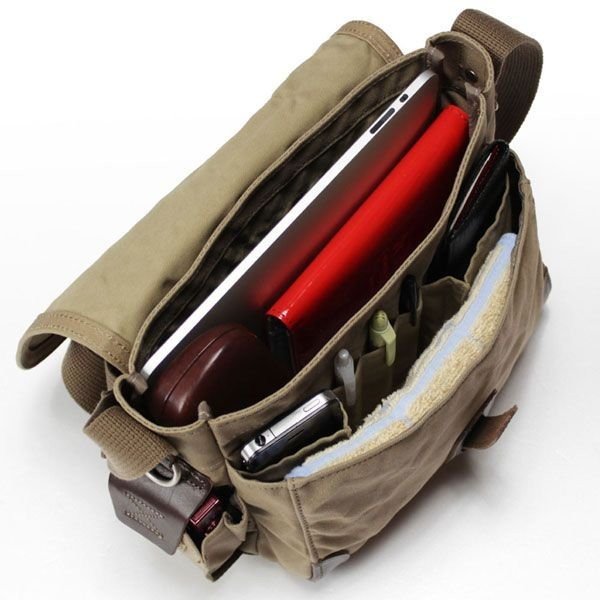 自然でナチュラルな表情のパラフィン帆布と、使い込むほどに味のでるオイルレザーのコンビで作られた大人のためのカジュアルバッグ。コンセプトの一つであるステッチワークが、全体を装飾的に仕上げています。メインルームは10インチのタブレットに対応。サイドポケットはスマートフォンやデジカメなどの収納に適しています。