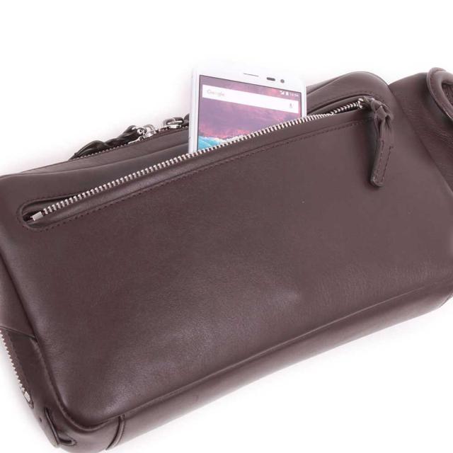 内側マチ付きポケットには飛び出し防止のマグネットボタンが付属しているので、スマートフォンなどの収納におすすめ。