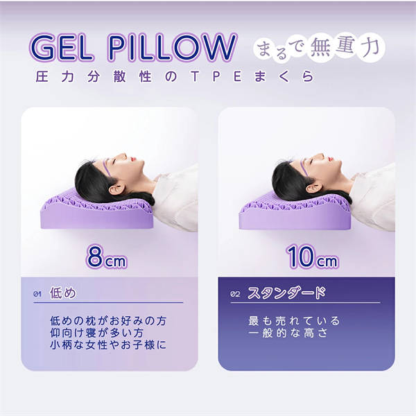 枕 ゲル枕 ジェル枕 快眠 安眠枕 まくら 肩こり 無重力まくら 高反発 柔らか 人間工学 通気性 高さ調整可能 洗える 枕カバー付き 母の日 ギフト