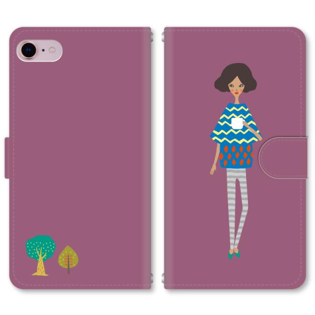 スマホケース 手帳型 iPhone13 iPhoneSE2 アイフォン 8 aquos sense GooglePixel xperia galaxyなど多機種制作対応 m016_北欧の女の子(パープル)