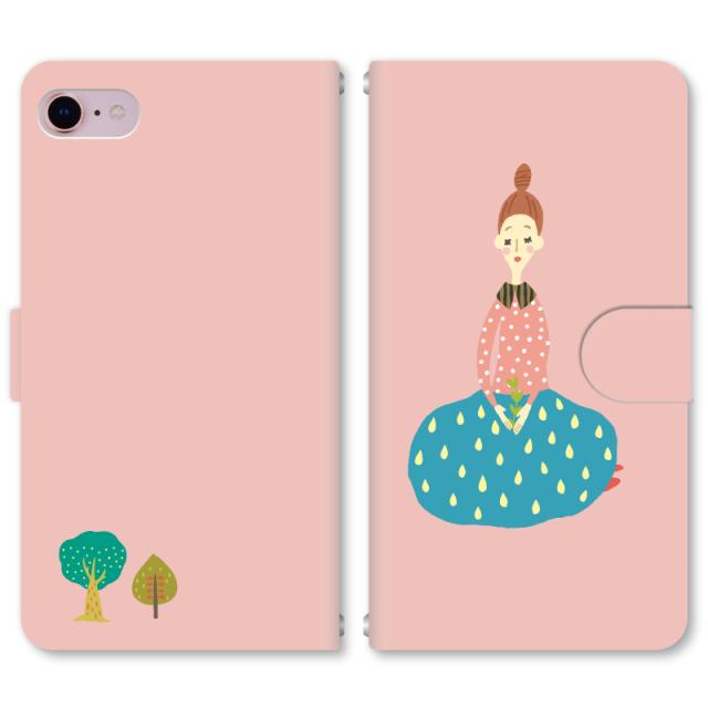 スマホケース 手帳型 iPhone13 iPhoneSE2 アイフォン 8 aquos sense GooglePixel xperia galaxyなど多機種制作対応 m017_北欧の女の子(ピンク)