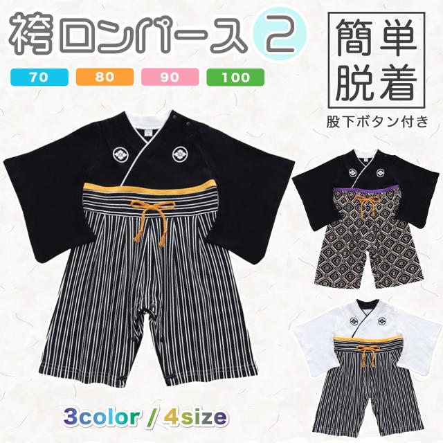 はかまロンパース 男の子 2 ベビー 赤ちゃん 新色 袴 ロンパース 羽織 着物 新生児 お宮参り お食い初め 初節句 七五三 正月 子供服 ベビー服 衣装 コスチューム ユ00582