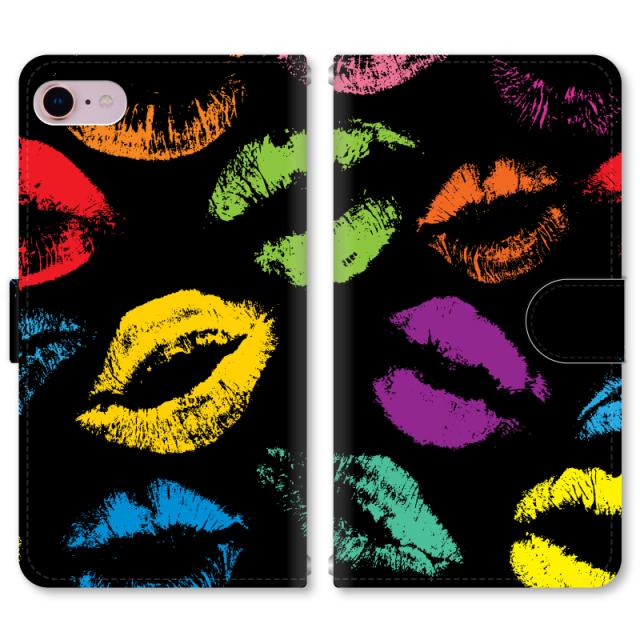 スマホケース 手帳型 iPhone13 iPhoneSE2 アイフォン 8 aquos sense GooglePixel xperia galaxyなど多機種制作対応 m2064_唇A