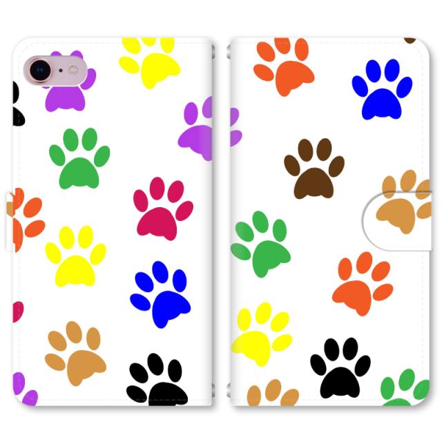 スマホケース 手帳型 iPhone13 iPhoneSE2 アイフォン 8 aquos sense GooglePixel xperia galaxyなど多機種制作対応 m2077_足跡C