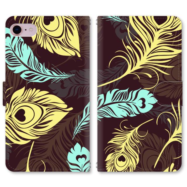 スマホケース 手帳型 iPhone13 iPhoneSE2 アイフォン 8 aquos sense GooglePixel xperia galaxyなど多機種制作対応 m2106_フェザーB