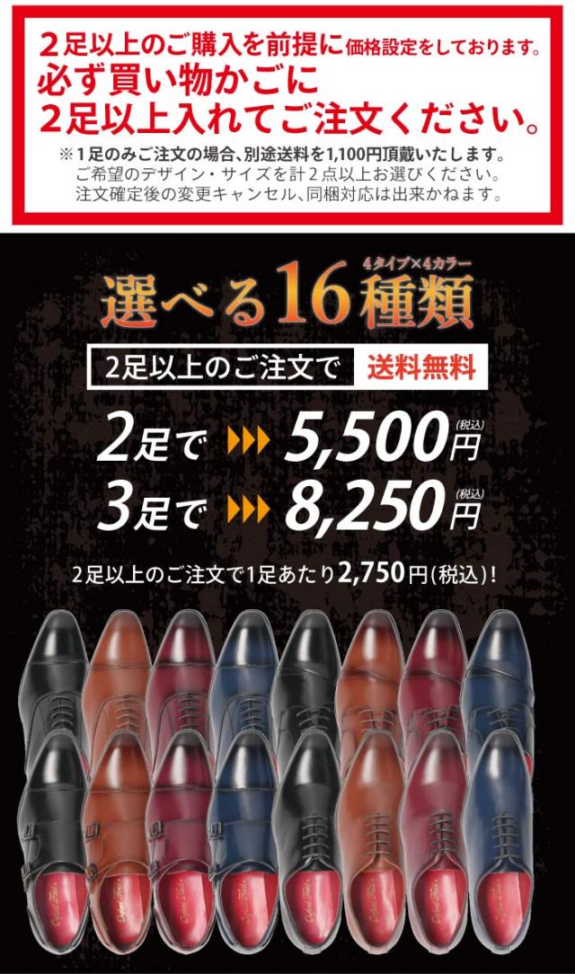 ビジネスシューズ メンズ 【2足で5500円】 選べるセット 選べる福袋 まとめ買い ストレートチップ ダブルモンクストラップ プレーントゥ 内羽根式 外羽根式 冠婚葬祭 フォーマル 就職活動 パーティー ブラック ブラウン ネイビー ワイン