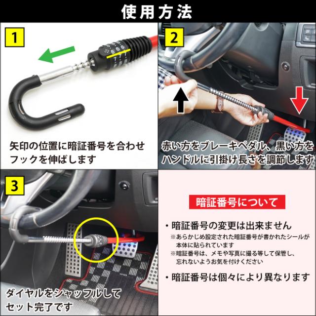 ハンドルロック ステアリングロック 盗難防止 ダイヤル式 3桁 ペダルロック カーセキュリティ セキュリティーロック 盗難対策 自動車 乗用車 防犯 KIKAIYA