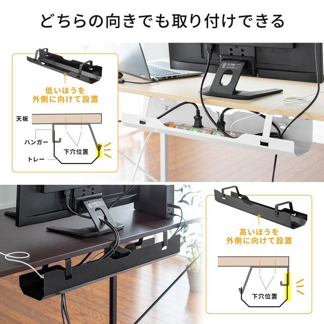 ケーブルトレー 配線受け ケーブルオーガナイザー デスク固定タイプ スチール金属製 電源タップ ケーブル収納 ブラック ホワイト[200-CT001]