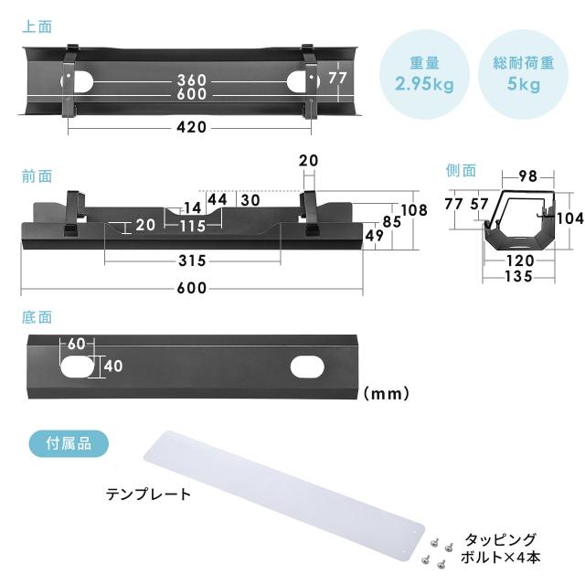 ■カラー:ブラック 200-CT001BK ホワイト 200-CT001W■サイズ:約W600×D135×H108mm