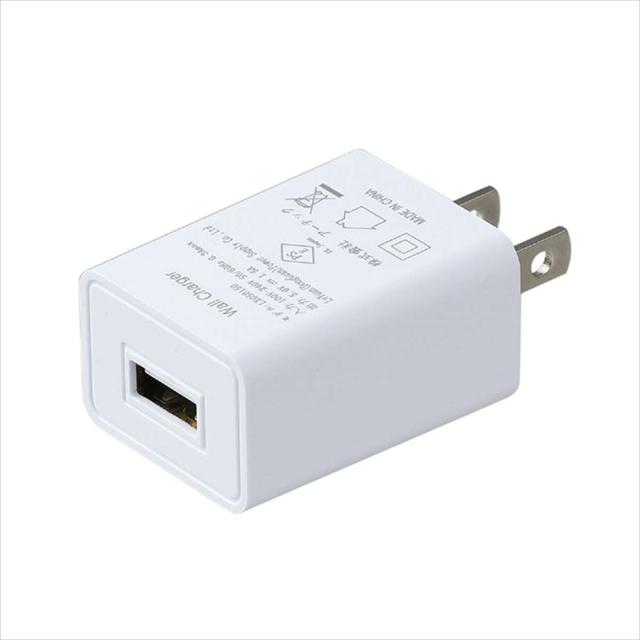USB機器をコンセントから充電。電源電圧/AC100〜240V、定格出力/DC5V1.5A。