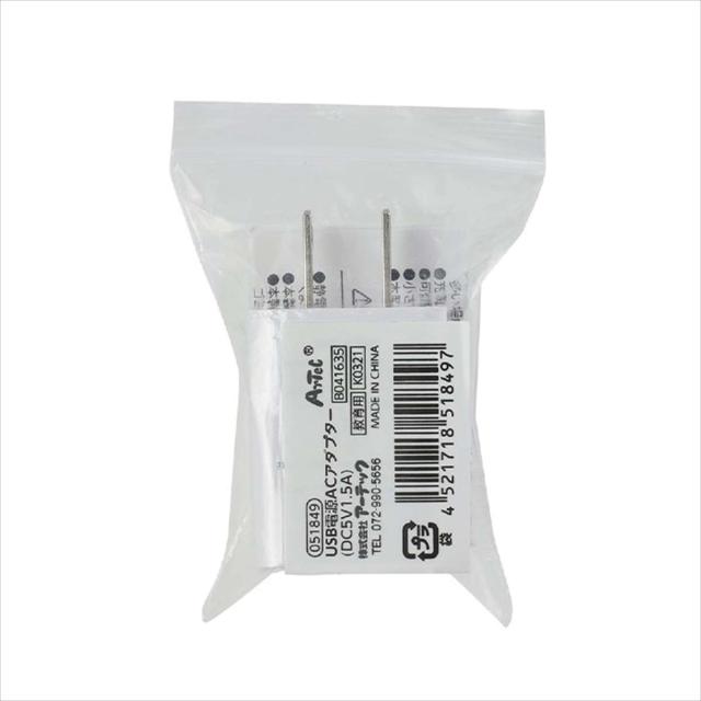 USB電源 ACアダプター コンセント 充電 DC5V1.5A コンセント充電 AC充電 コンパクト 持ち歩き アーテック 51849