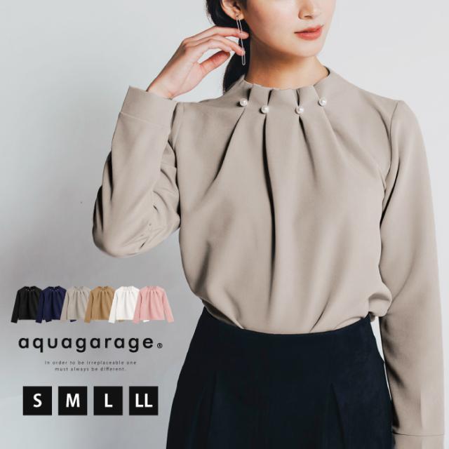 ≪ゆうメール便配送30・代引不可≫ パールネックブラウス レディース 春 秋 S M L LL 3L 長袖 アクアガレージ aquagarage