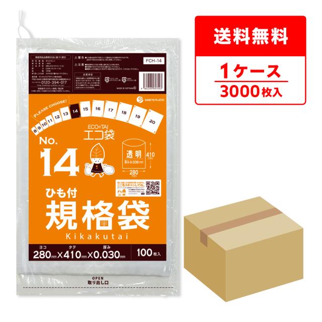 FCH-14 ひも付 規格袋 14号 0.030mm厚 透明 100枚x30冊 食品検査適合 RoHS指定 送料無料