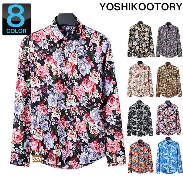 カジュアルシャツ メンズ 40代 50代 長袖シャツ 総柄シャツ アロハ 花柄シャツ トップス 旅行 キレイめ