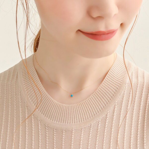 天然石に寄り添って煌めくキュービックジルコニアが首もとに輝きをプラスします。