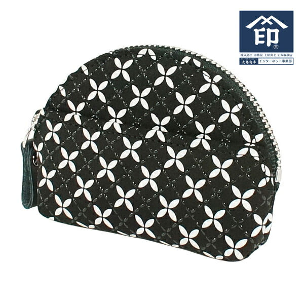 白い更紗と黒の漆で柄付けされた「七宝繋ぎ」柄が印象的な印傳屋のブランド
