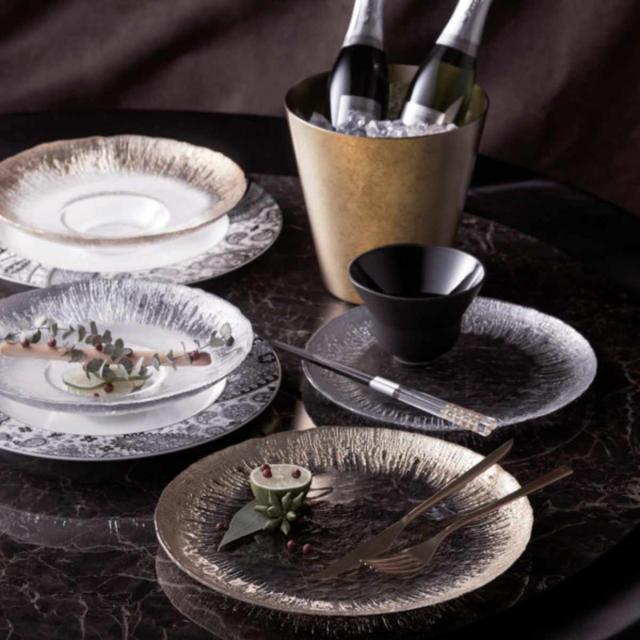 ガラス製の涼しげで上品な食器が、落ち着きのある大人な食卓を演出してくれます。おもてなしや特別な日のお料理にもぴったりです。おうちで使う特別な一枚として、また大切な人への贈り物としてもおすすめです。