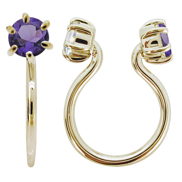 フープピアス 18k アメジスト 小さめ イヤリング きれいめ ノンホールイヤリング K18 片耳