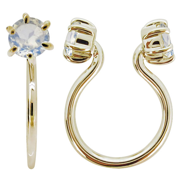 フープピアス 18k ロイヤルブルームーンストーン 小さめ イヤリング きれいめ ノンホールイヤリング K18 片耳