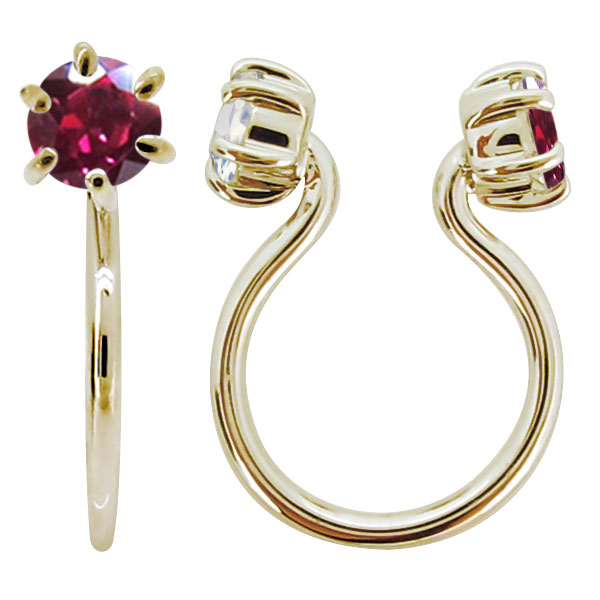 フープピアス 18k ルビー 小さめ イヤリング きれいめ ノンホールイヤリング K18 片耳