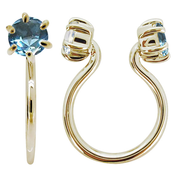 フープピアス 18k ブルートパーズ 小さめ イヤリング きれいめ ノンホールイヤリング K18 片耳