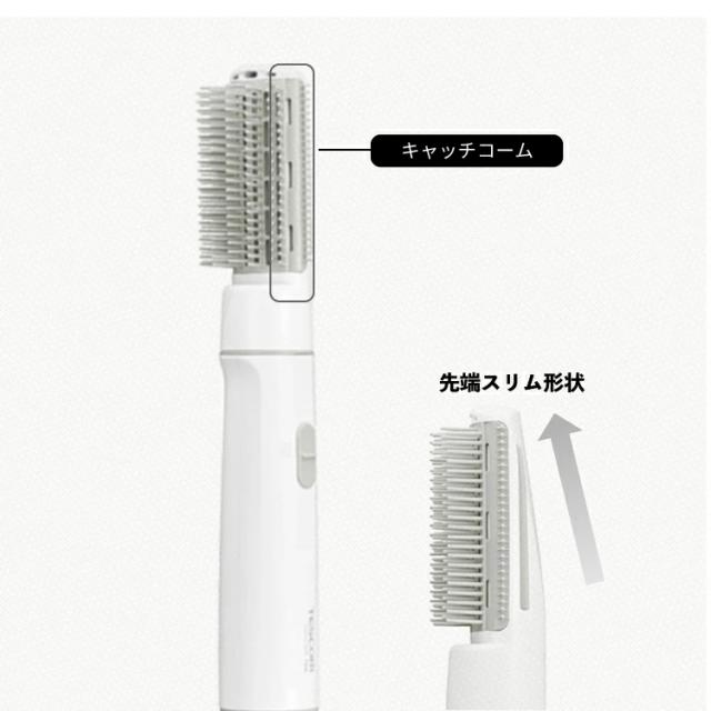 キャッチクッションブラシ採用でサイドの細かいコームで毛先まで逃がさずキャッチ。