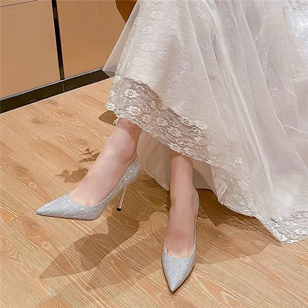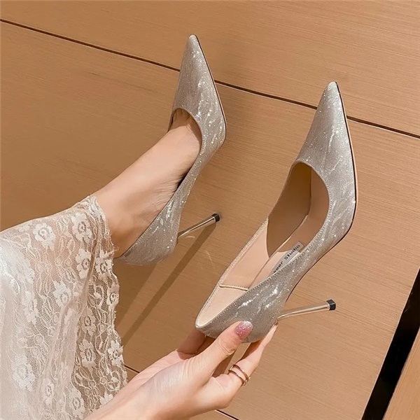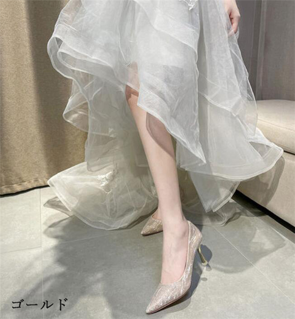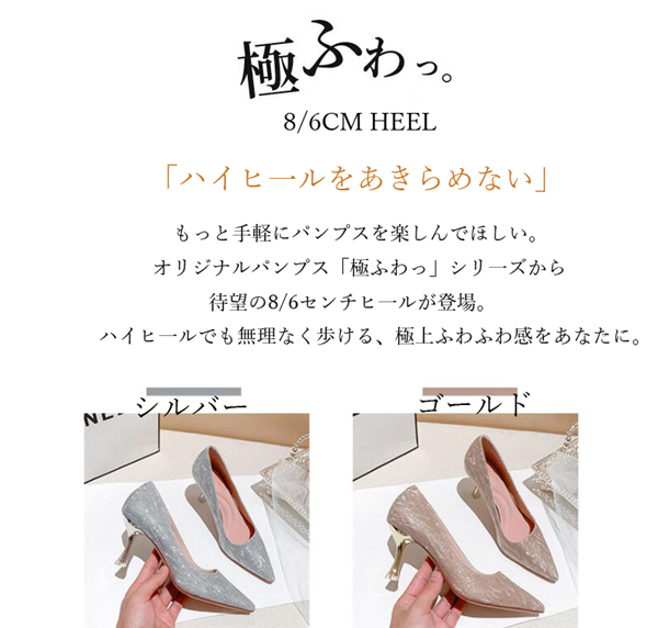 パンプス ハイヒール パンプス レディース 6/8cmヒール ピンヒール ポインテッドトゥ ラメ キラキラ 通勤用 仕事 美脚パンプス 痛くない ベーシック シンプル 華やか フォーマル パーティー 結婚式 披露宴 シャンパン ゴールド シルバー