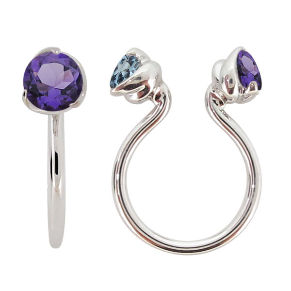 2月誕生石アメジストを使用したプラチナ製の、シンプルデザインのフープイヤリング(片耳)です。