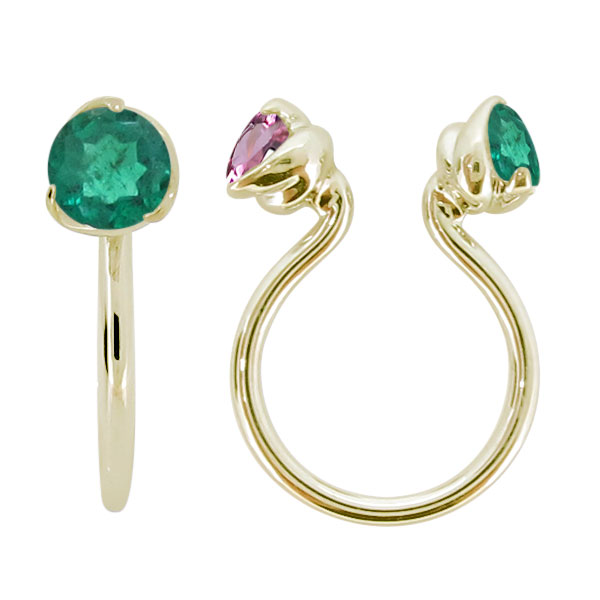 フープイヤリング K18 ノンホールピアス レディース エメラルド イヤリング おしゃれ かわいい 片耳 リバーシブル