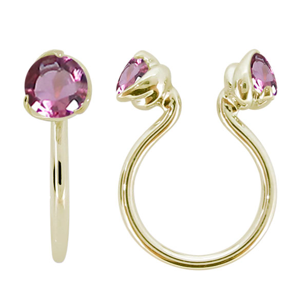 フープイヤリング K18 ノンホールピアス レディース ピンクトルマリン イヤリング おしゃれ かわいい 片耳 リバーシブル