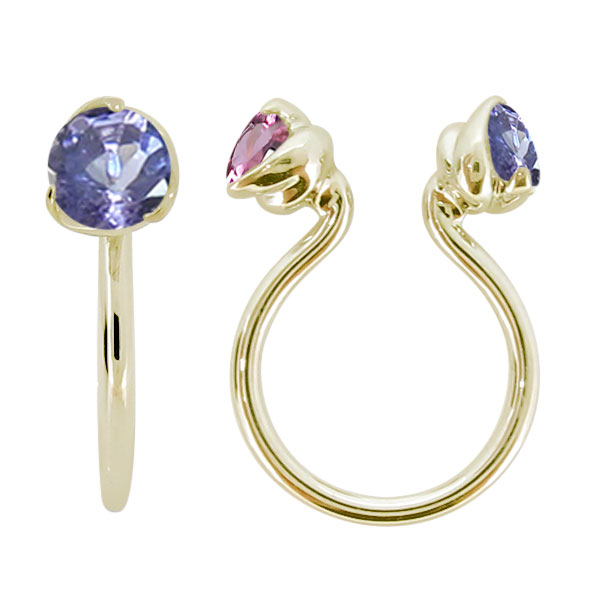 フープイヤリング K18 ノンホールピアス レディース タンザナイト イヤリング おしゃれ かわいい 片耳 リバーシブル