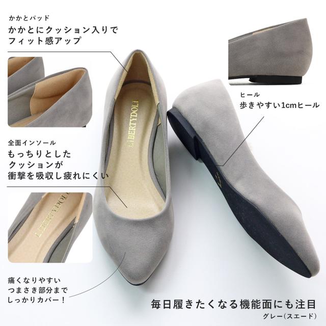 パンプス レディース ローヒール パンプス 走れる 痛くない 黒 1cmヒール 低反発インソール ポインテッドトゥ リバティードール No.5315