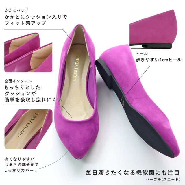 パンプス レディース ローヒール パンプス 痛くない 走れる 黒 ぺたんこ 1cmヒール 低反発インソール 赤 デニム カラー リバティードール No.5315
